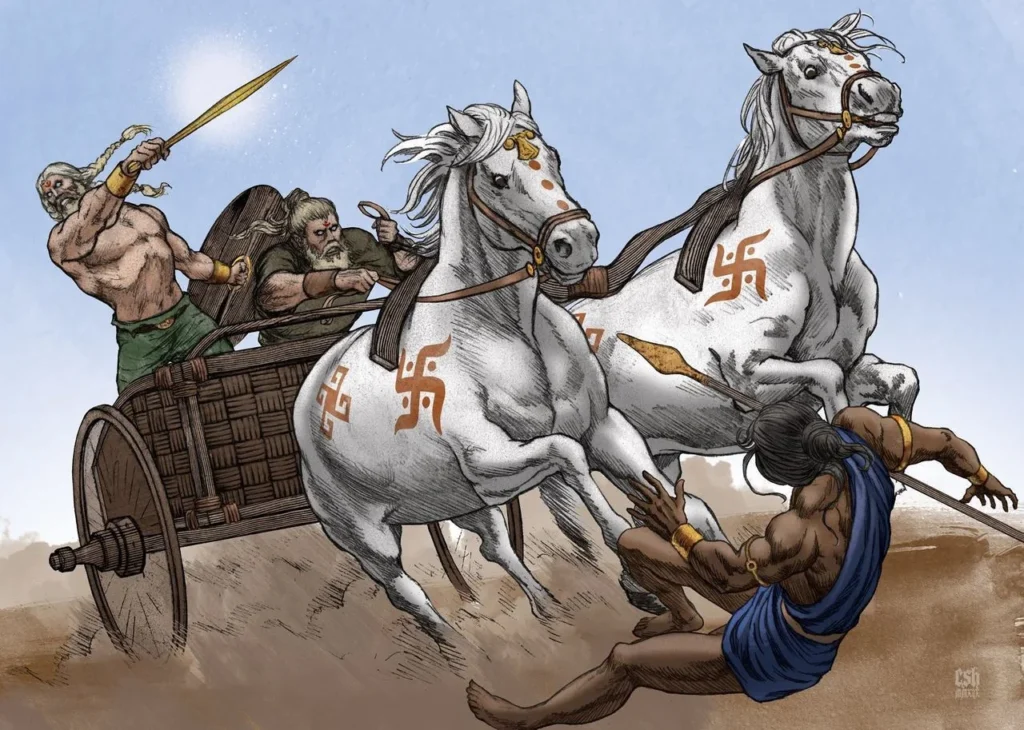 Arjalaiset liikkuivat Euroopasta Keski-Aasiaan jonne he perustivat pronssikautisen Sintaštan kulttuurin(video). Täältä arjalaiset heimot jatkoivat Lähi-itään ja Pohjois-Intiaan valloittaen alueita itselleen ja perustaen sinne omia valtakuntiansa.