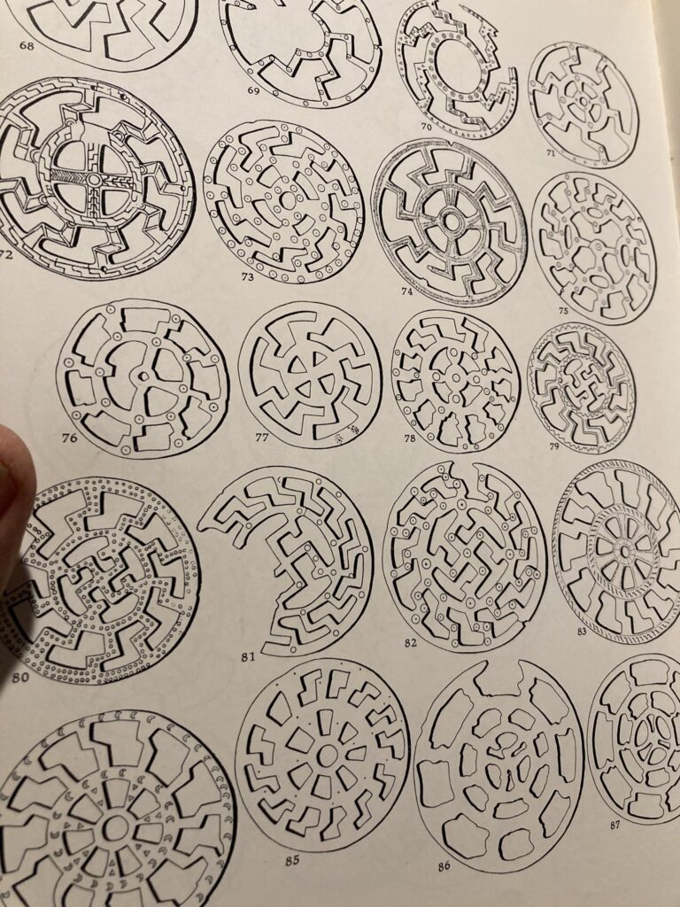 Aurinkopyörän arkeologisten löytöjen piirustuksia