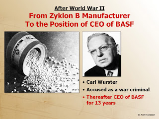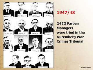 1933 IG Farben oli natsien suurin rahoittaja. IG Farbenin näkökulmasta katsottuna natsien maailmanvalloitus suunnitelma oli täysin järkeenkäypä ja samoilla linjoilla heidän suunnitelmiensa kanssa. Sodan jälkeen todistettiin, että investoimalla natsipuolueeseen, IG Farbenin jäsenyritykset saivat haltuunsa kemianteollisuuden ja lääketeollisuuden Saksan valtaamilla alueilla ja yksinoikeuden alansa patentteihin.